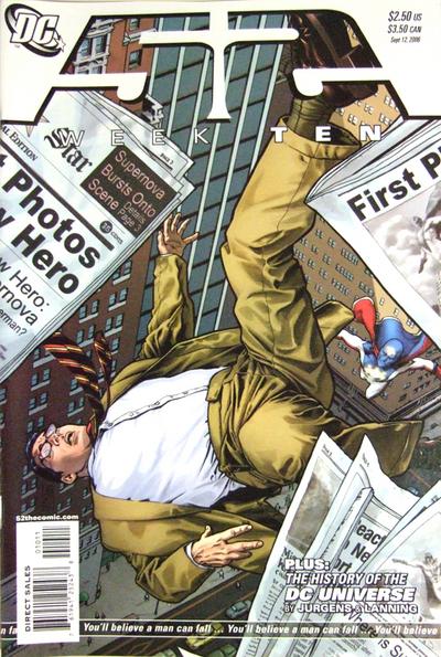 The story of the year continues in four more action-packed chapters of comics' only weekly superhero adventure! This month, get ready for the debut of three new characters that will create a powerful impact in the DCU...and change the face of 52 completely. In WEEK 9, with art by Shawn Moll & Tom Nguyen, learn who dies before Devilance. Plus, witness the debut of the new JLA! WEEK 10, illustrated by Chris Batista (LEGION OF SUPER-HEROES) & Jimmy Palmiotti, features the debut of Supernova, the new guardian of Metropolis! WEEK 11, featuring art by Joe Bennett & Jack Jadson and Todd Nauck & Marlo Alquiza, sheds light on the mysterious woman protecting Gotham Citywearing a very familiar uniform! Black Adam finds love in the arms of mythology in WEEK 12, with art by Eddy Barrows & Rob Stull. Isis is here! Plus the debut of the new SECRET ORIGINS backup by Dan Jurgens and Norm Rapmund! 52: A year without Superman; a year without Batman; a year without Wonder Woman but not a year without heroes.