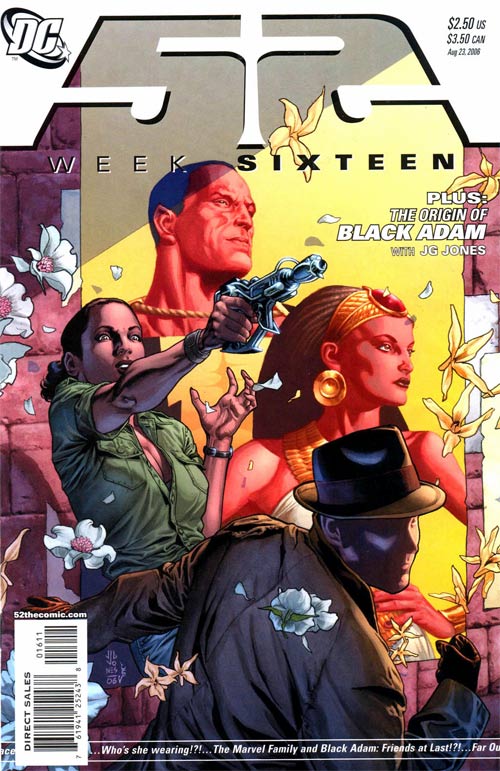 In WEEK 13, featuring art by Todd Nauck & Marlo Alquiza, it's the resurrection of Sue Dibny! But are the Elongated Man's ex-teammates here to help, or hurt? Plus, the origin of Elongated Man by Mark Waid and Kevin Nowlan! In WEEK 14, with art by Dale Eaglesham & Art Thibert, Steel faces a turning point, and Montoya and the Question go international! Plus, the origin of Steel by Waid and Jon Bogdanove! It's the death you never expected in WEEK 15, featuring art by Shawn Moll & Tom Nguyen! Plus, the origin of Metamorpho by Waid & Eric Powell (The Goon)! Celebrate the nuptials of Black Adam and Isis in WEEK 16, illustrated by Joe Bennett & Ruy Jose! Plus, the origin of Black Adam by Waid and J.G. Jones! WEEK 17 features art by Chris Batista, Jack Jadson & Ruy Jose, and can be described in one word: Lobo! Plus, the origin of Lobo by Waid and Giffen! 52: A year without Superman; a year without Batman; a year without Wonder Womanbut not a year without heroes.