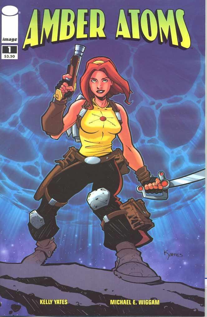 story, art & cover KELLY YATES colors MICHAEL E. WIGGAM   'CHAPTER ONE' Blast-off with the newest sci-fi adventure heroine Amber Atoms! Follow the ongoing adventures of this modern day 'Flash Gordon' as Amber dreams of leaving her mundane life, but not exactly how she imagined. Mercenaries and aliens suddenly invade Amber's world as she learns that her family history could decide the fate of the galaxy.   FEBRUARY 18 o 32 PAGES o FC o $3.50