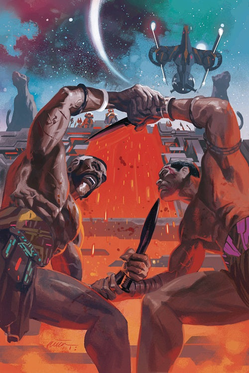 A NEW ARC - AND FIRST CONTACT WITH WAKANDA PRIME! 'TWO THOUSAND SEASONS' STARTS HERE! Weeks ago, the Black Panther disappeared on a mission into deep space, leaving behind his country, his family and the woman he loves. Find out at last what Wakanda Prime has done without its king. As the race against N'Jadaka's expansion continues, the goddess Bast makes a dramatic move and T'Challa reaches out for the life he left behind! Rated T