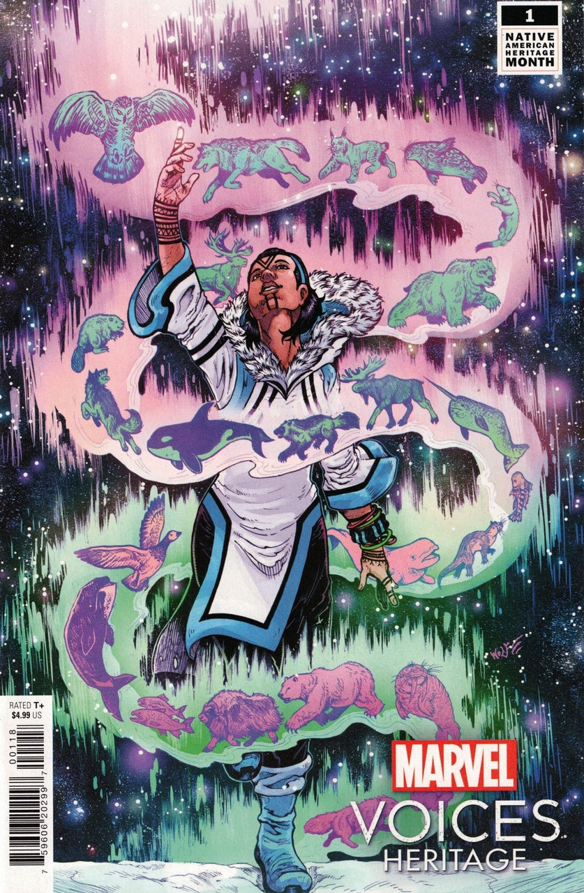 THE HIT VOICES SERIES CONTINUES WITH AN EXTRAORDINARY ARRAY OF INDIGENOUS TALENT! Year two of Marvel's Voices kicks off with a celebration of Indigenous characters and talent! Get the full story behind River, the mysterious stranger from the pages of Rebecca Roanhorse's new ECHO series! Discover Snowguard's greatest hopes and fears in a tale by celebrated filmmaker Nyla Innuksuk! And many more reveals to come. New and established creators explore the wonders of the Marvel Universe - catch the next big wave here! RATED T+