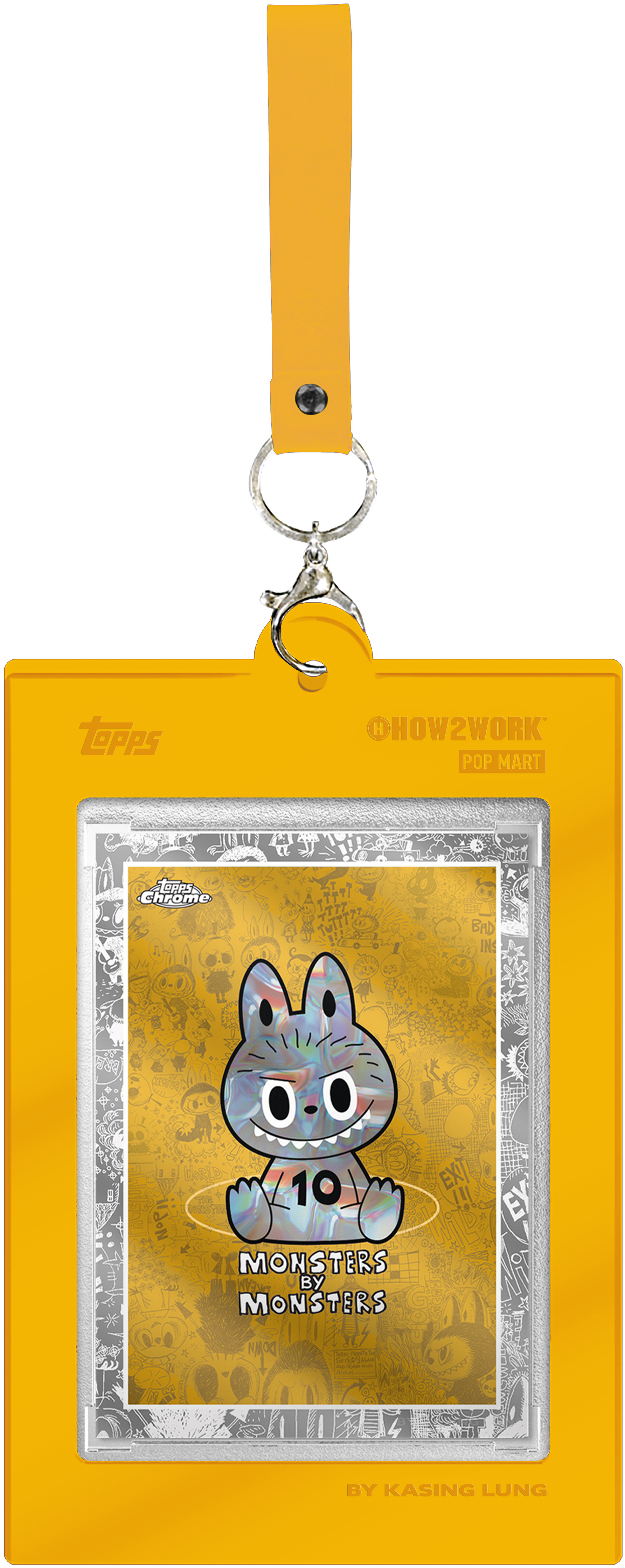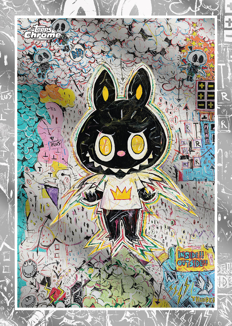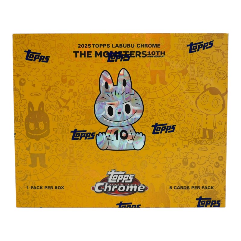 Topps has partnered with How2Work and Pop Mart for the first time ever to bring you the 2025 Topps Chrome® Labubu 10th Anniversary box! Each box includes four Chrome® base cards and one Chrome® parallel, plus a collectible keyring case to display your card just like your Labubu! Cards feature artwork from Labubu creator and artist Kasing Lung. Collectors can chase vibrant Chrome® parallels including Refractors, 10th Anniversary logo borders and 1-of-1 SuperFractors, along with ultra-rare Artist Autographs.