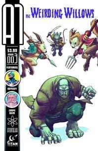 Three stories continue in this newest issue. In Weirding Willows, Frankenstein's Monster is in the Weir and the angry mob greeting him with pitchforks and flaming torches are Mice, Weasels, and Rabbits. From World War 2 to Iraq, you'll always find Blazing Glory in the thick of it. But after 60 years of combat he's starting to question what he's doing and why in Odyssey. In Carpe Diem: Arcade Fire, an extremely out-of-shape video game freak assembles his own army of gamers and plans a hit on a well-loved politician. The reason? Said politician made a really disparaging comment on the nutfreak's favorite game!