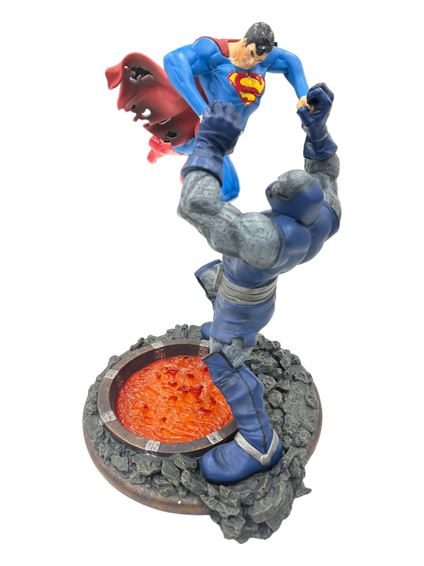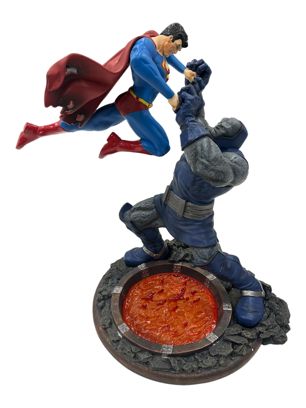 DESIGNED BY WALTER O'NEIL SCULPTED BY RAY VILLAFANE Superman takes the fight to Darkseid as they battle over the ever-raging fire pits of Apokolips in this beautiful second edition of DC Collectibles' classic battle statue. Measures Approximately 12.5' Tall