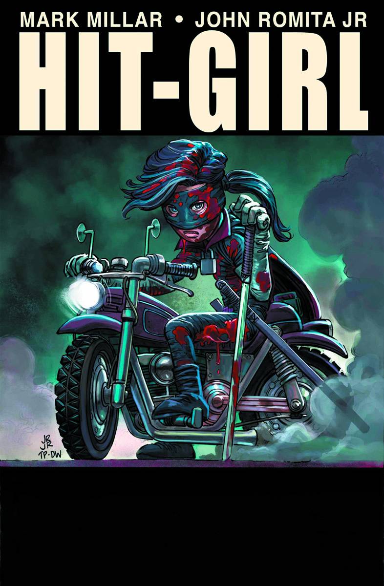 From Marvel Comics. Hit-Girl spins off into her own blood-soaked series by the sales-busting creative team of Mark Millar and John Romita Jr. This story takes place between Kick-Ass Volumes 1 and 2 as Mindy McCready tries to settle into life as a regular school-girl, but wants nothing more than to be dispensing hot justice to the scum of New York City. Her mother and step-father think she's doing her homework, but in reality she's taken Kick-Ass on as her sidekick and is training him up to punch, shoot and stab ... just like Daddy would have wanted.