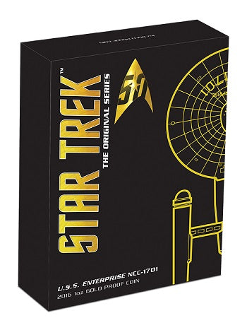 The Star Trek: The Original Series - U.S.S. Enterprise NCC-1701 2016 1oz Gold Proof High Relief Coin from The Perth Mint, featurinG Official Licensed Product